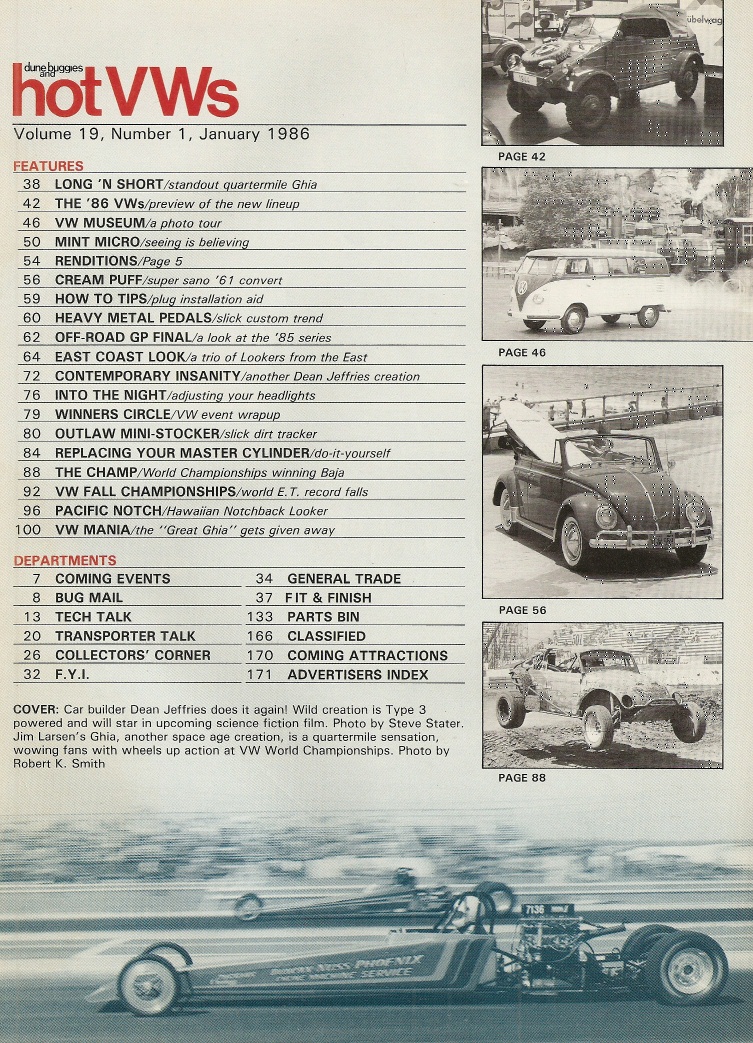 Reviews DUNE BUGGIES & HOT VW'S 1986 JAN - VW MUSEUM, ’56 MICROBUS, 1986 VWs