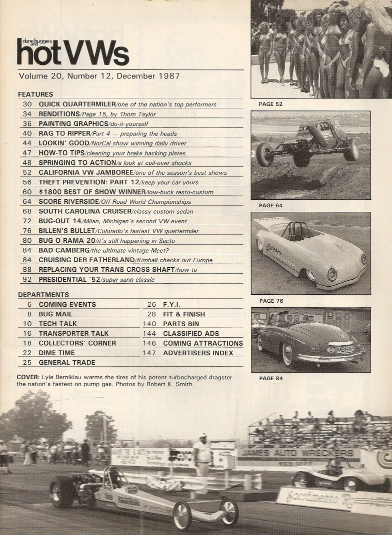 Reviews DUNE BUGGIES & HOT VW'S 1987 DEC - PAINTING GRAPHICS, HEAD WORK, SWEET ‘52