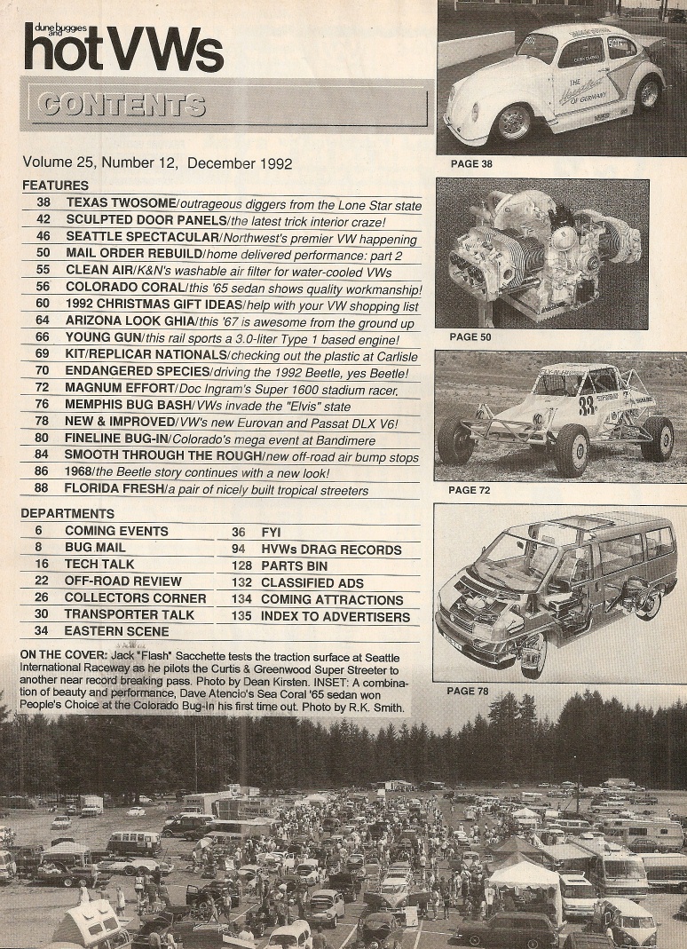 Reviews DUNE BUGGIES & HOT VW'S 1992 DEC - CUSTOM DOOR PANELS, KIT NATS, 92 BUG TEST