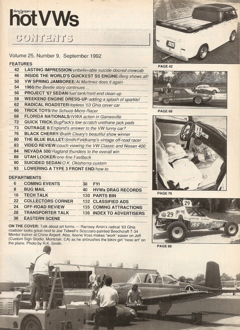 Reviews DUNE BUGGIES & HOT VW'S 1992 SEPT - LOWER A T3 FRONTEND, 280hp 2600cc BUILDUP