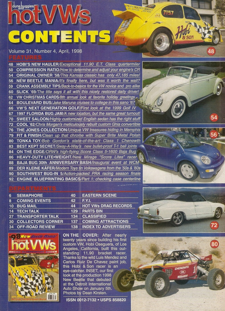 Reviews DUNE BUGGIES & HOT VW'S 1998 APR - OFFROADING, RACING BALL JOINT, BLUEPRINTING*