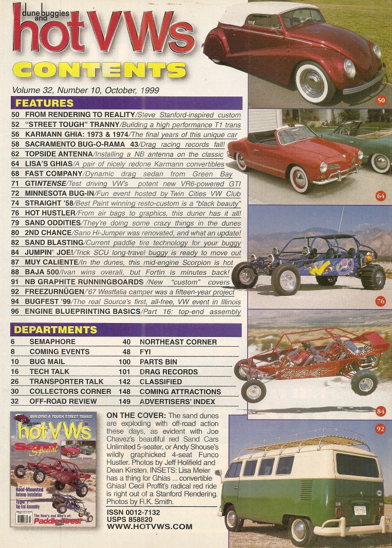 Reviews DUNE BUGGIES & HOT VW'S 1999 OCT - TOUGH TRANNY BUILT, T-1 TOP-END ASSEMBLY