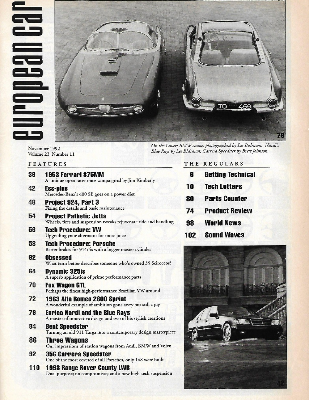 Reviews EUROPEAN CAR 1992 NOV - BMW 325is, '53 FERRARI, VW ALT PROJ, 911/914 MASTER CYL