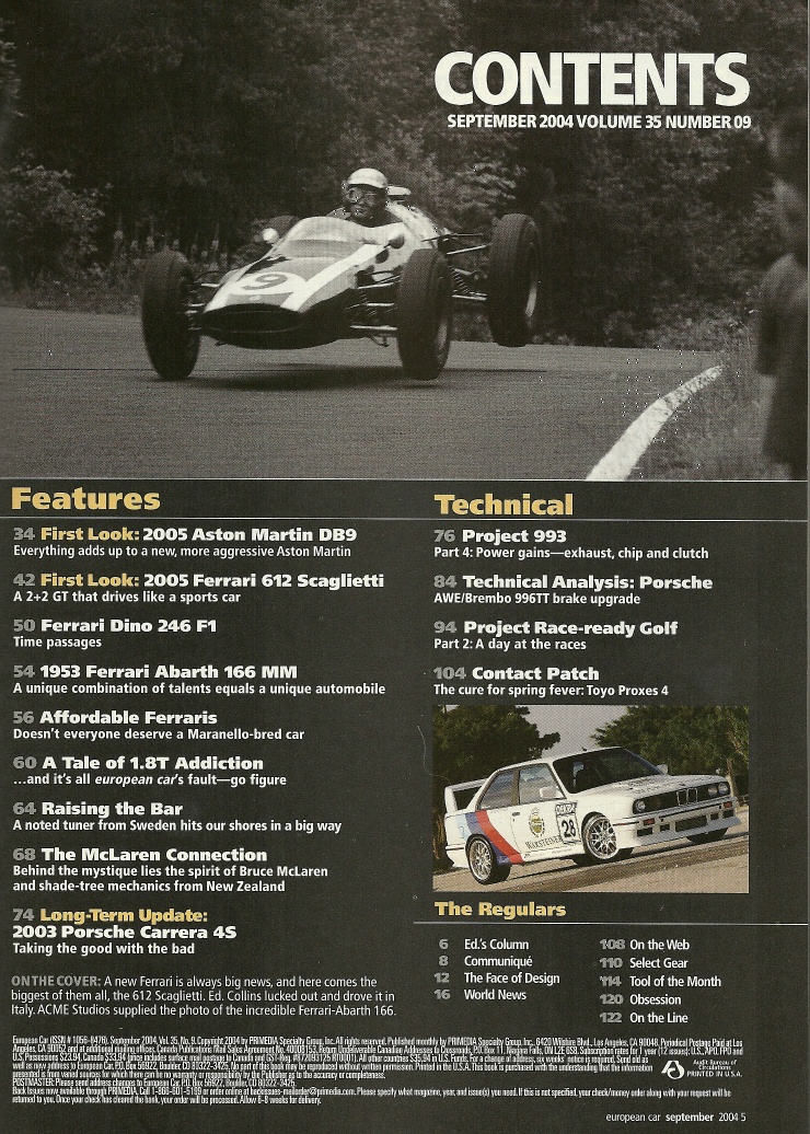EUROPEAN CAR 2004 SEPT -There is no description for this magazine yet. See picture of cover and contents below for details.