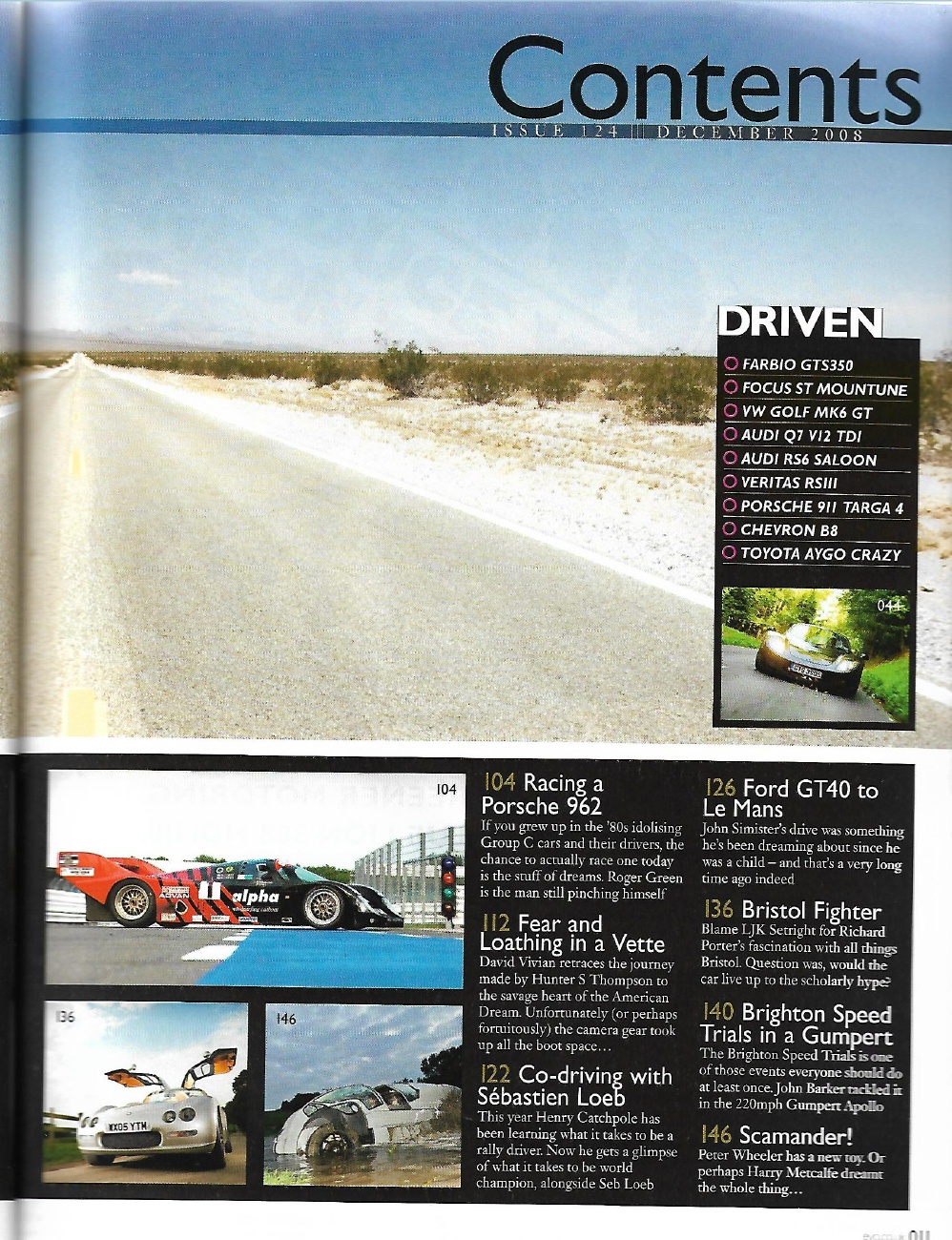 EVO THE THRILL OF DRIVING 2008 DEC - PORSCHE 962, GT40, CORVETTE, MERLIN-ENGINE*