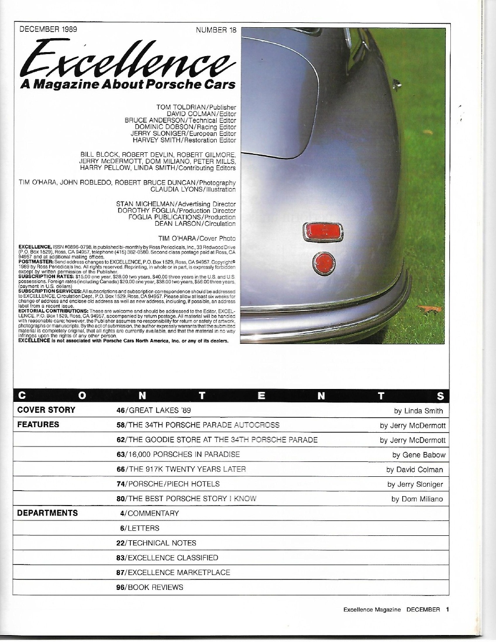 EXCELLENCE - PORSCHE 1989 DEC - REMEMBERING THE 917K, 34TH PORSCHE PARADE