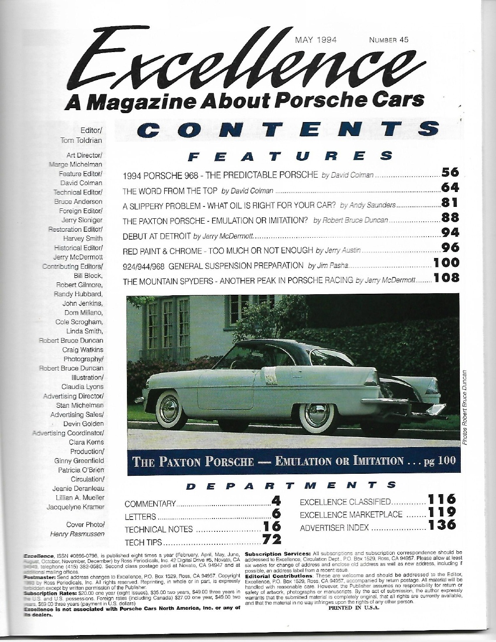 EXCELLENCE - PORSCHE 1994 MAY - PAXTON PORSCHE, NEW 968