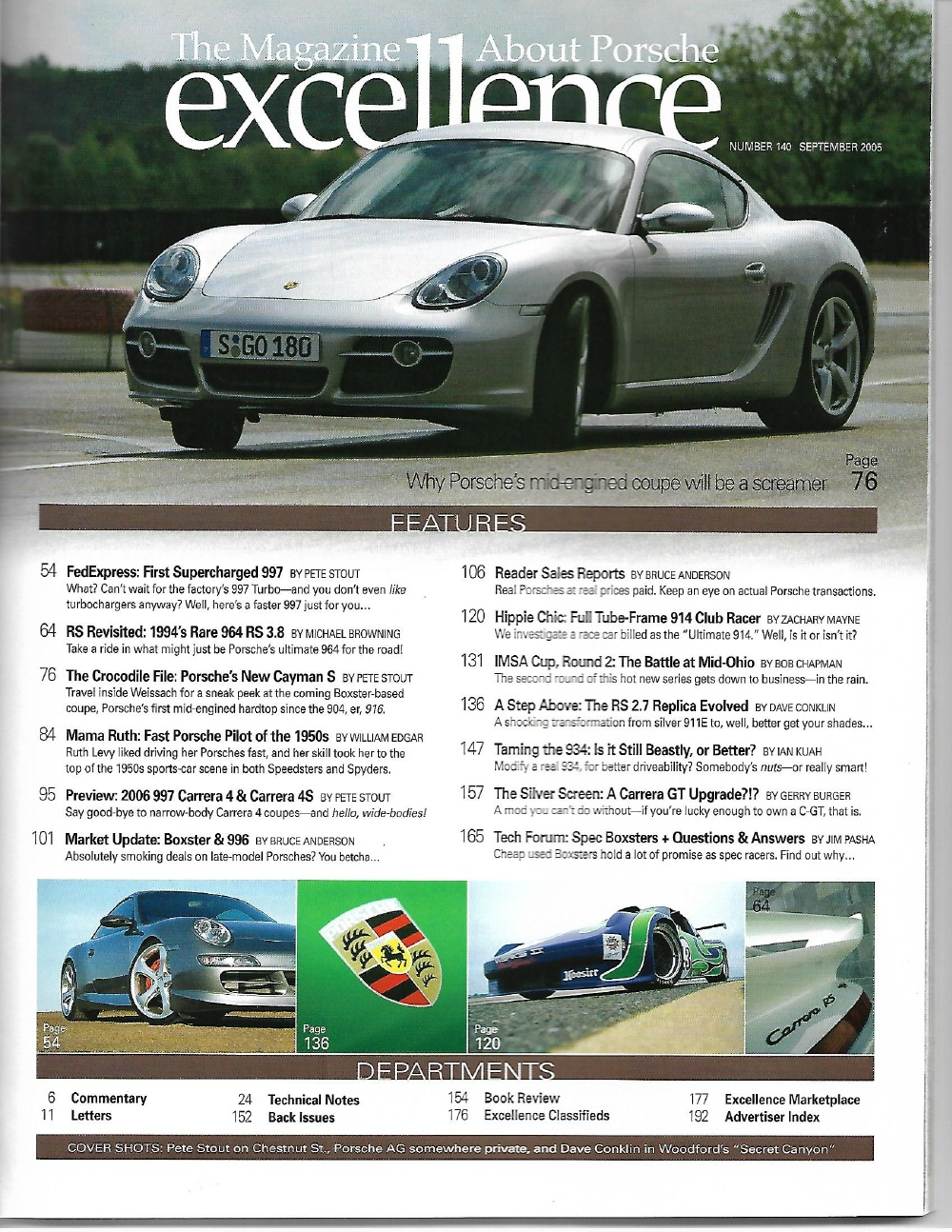 EXCELLENCE - PORSCHE 2005 SEPT - CAYMAN, RSR, WILD 914 CUB, 997-T