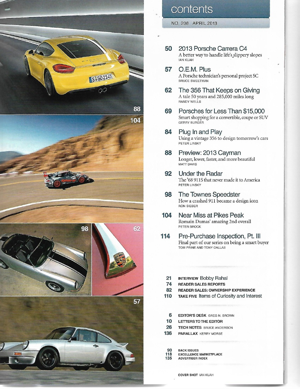 EXCELLENCE - PORSCHE 2013 APR - NEW C4 & CAYMAN, '67 SPEEDSTER