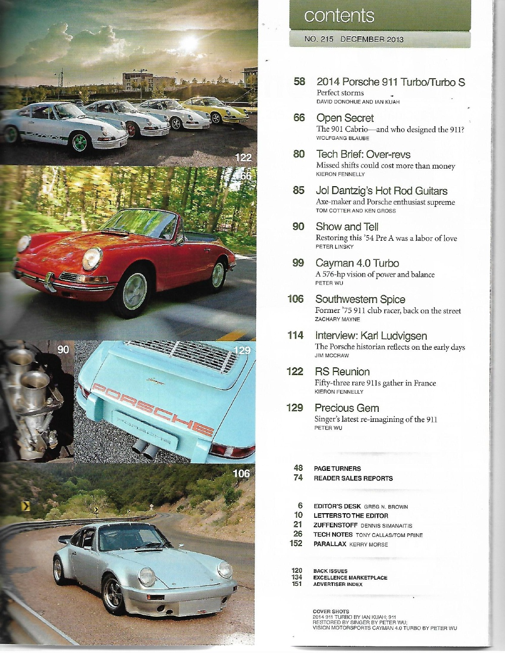 EXCELLENCE - PORSCHE 2013 DEC - NEW TURBO, SINGER 911, 901 CABRO