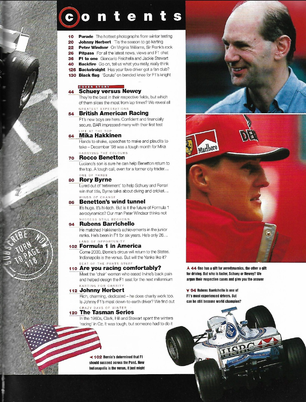 F1 RACING 1999 FEB - VILLENEUVE,HERBERT,RUBENS,BARRICHELLO,STEWART, FISICHELLA