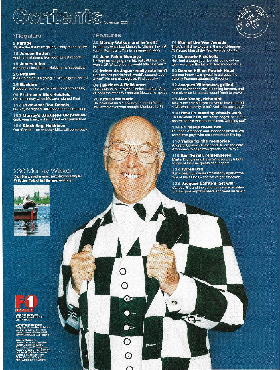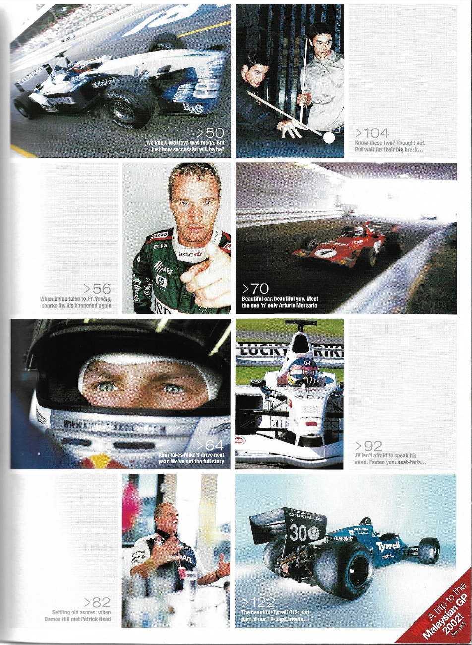 F1 RACING 2001 NOV - MONTOYA, EDDIE IRVINE, HEAD,MERZARIO, KIMMI, RON DENNIS*