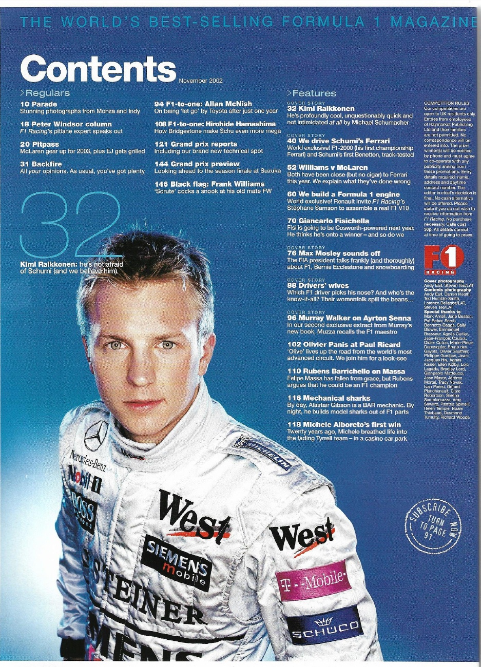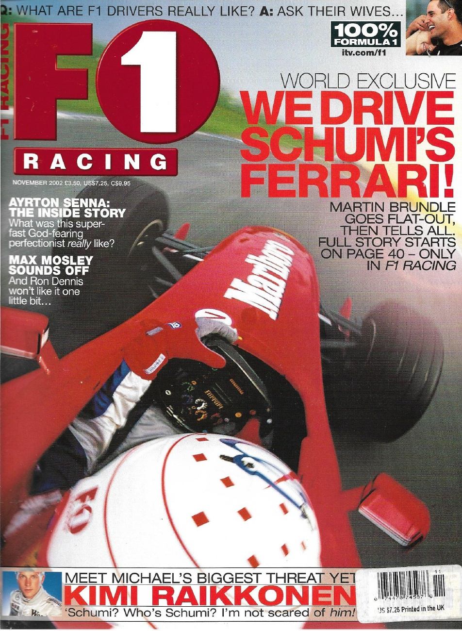 F1 RACING 2002 NOV - SENNA STORY, MOSLEY,BRUNDELL, RAIKKONEN,RICARD, ALBORENTO