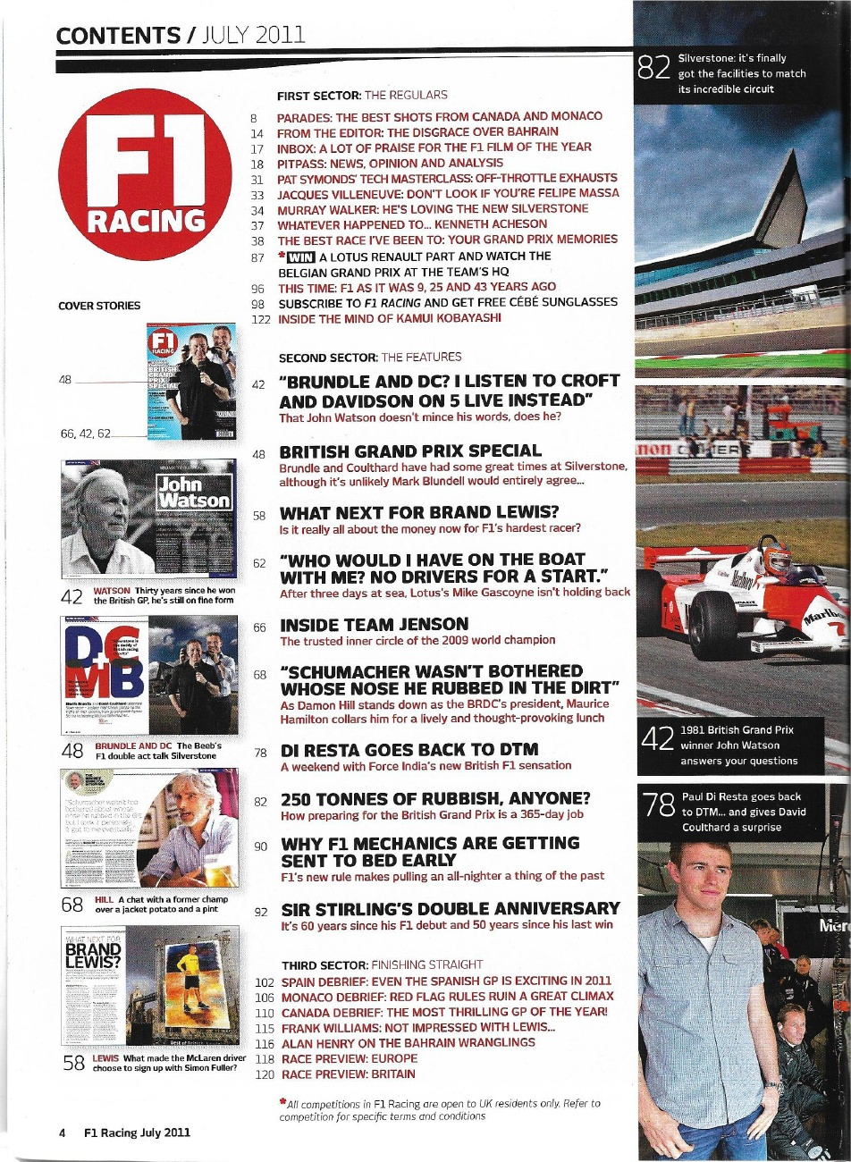 Reviews F1 RACING 2011 JULY - BRITISH GP, TEAM JENSON,GASCOYNE, RENAULT R31,MOSS