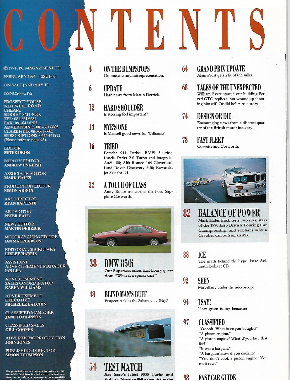 Reviews FAST LANE 1991 FEB - BMW 850i TESTED, PORSCHE 911 TURBO, BMW 3-SERIES, SAPHIRE
