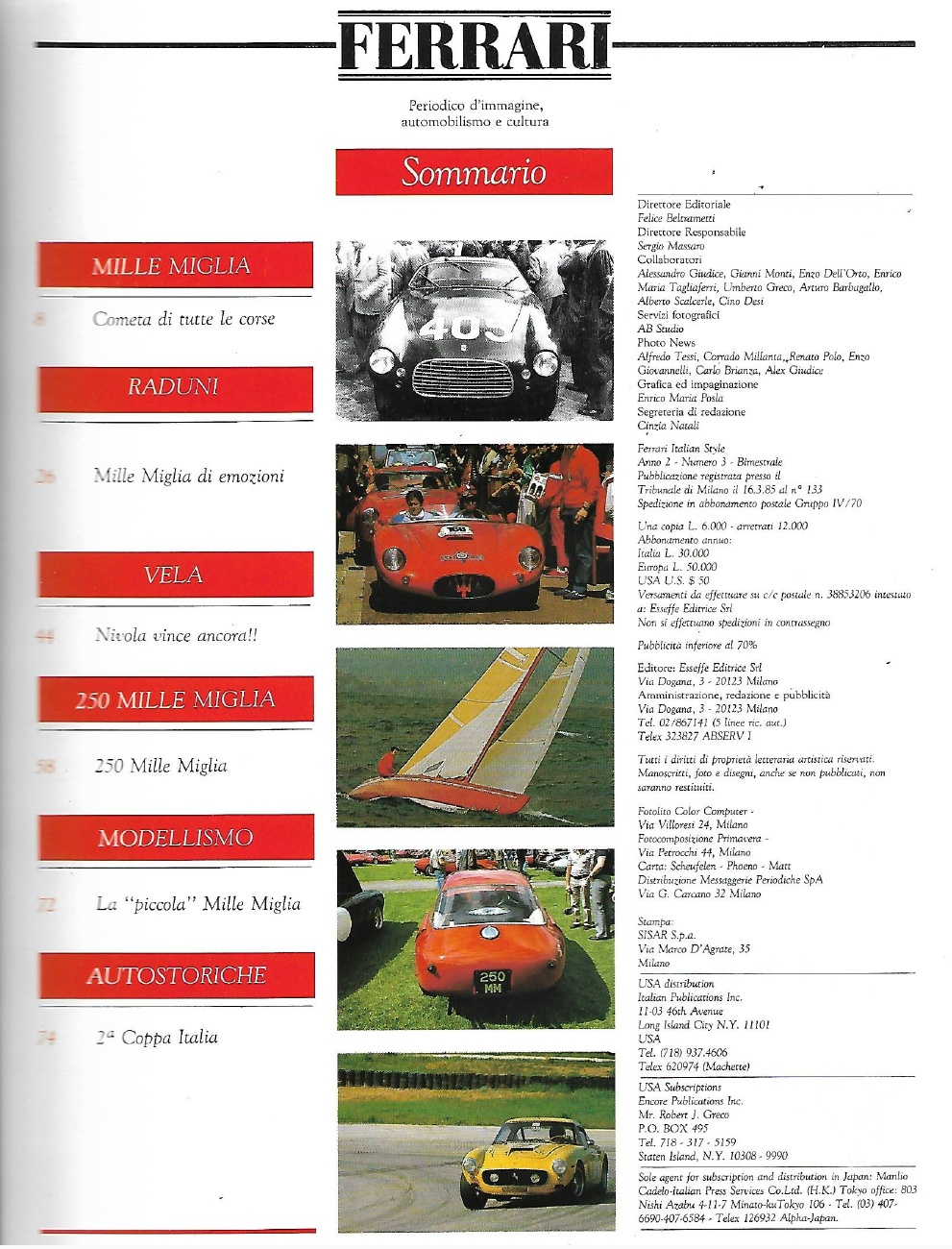 Reviews FERRARI ITALIAN STYLE 1986 JULY - ITALIAN LANGUAGE,MILLE MIGLIA
