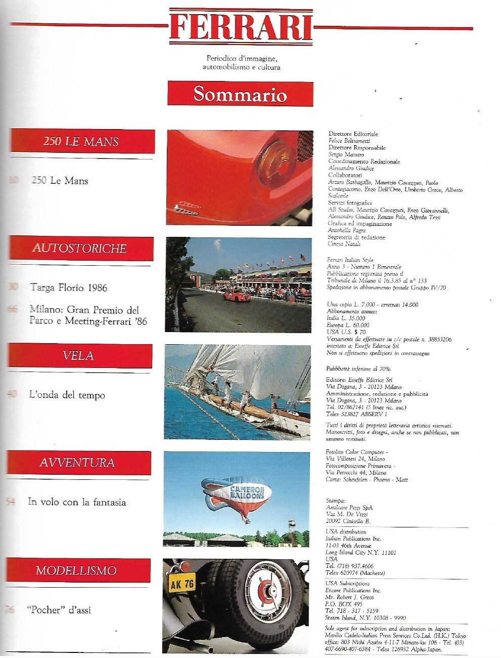 Reviews FERRARI ITALIAN STYLE 1987 FEB - ITALIAN LANGUAGE, 250 LEMANS, '86 TARGA FLORIO
