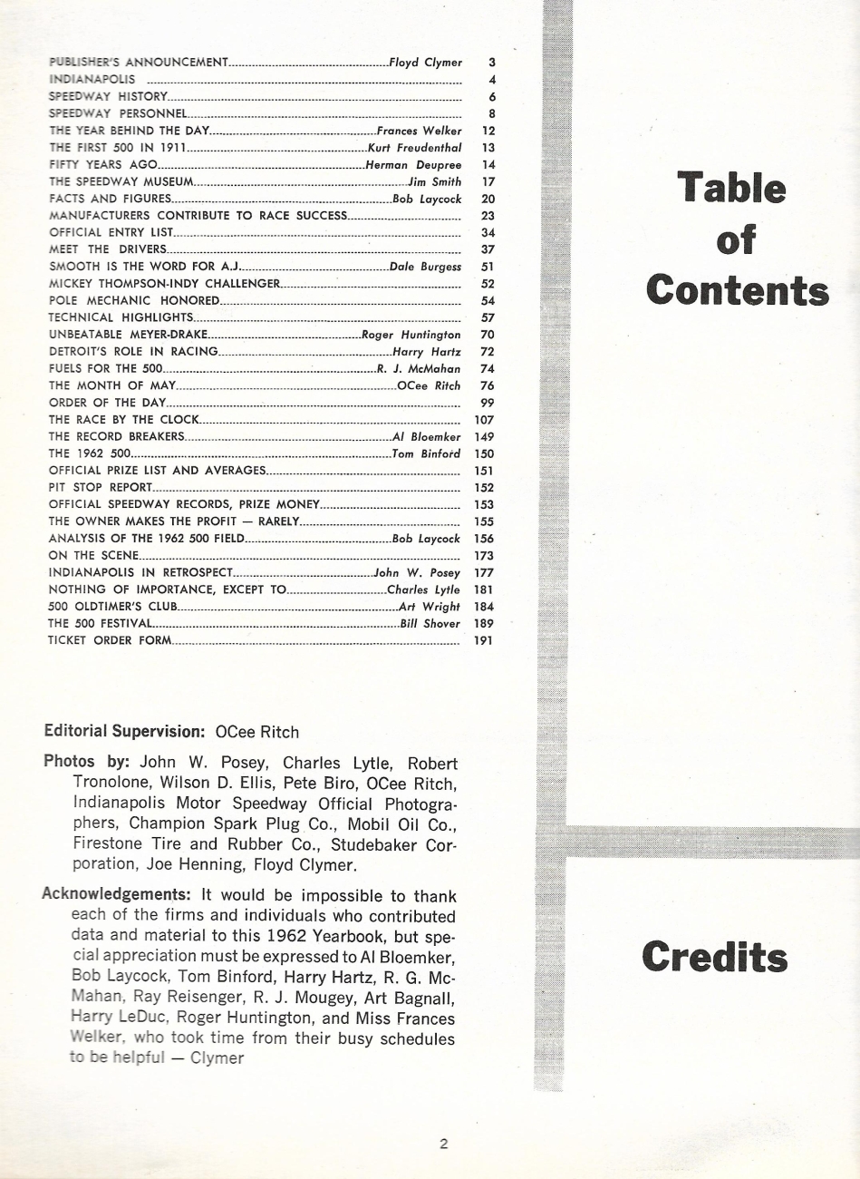 FLOYD CLYMER'S INDIANAPOLIS 500 MILE RACE YEARBOOK 1962