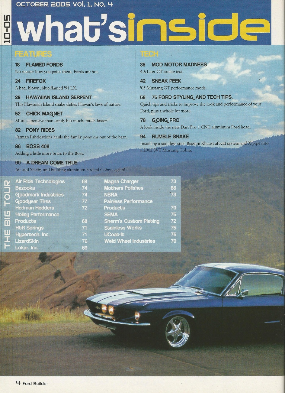 Reviews FORD BUILDER 2005 OCT - FLAMES, STYLING & TECH TIPS, NEW AC COBRAS