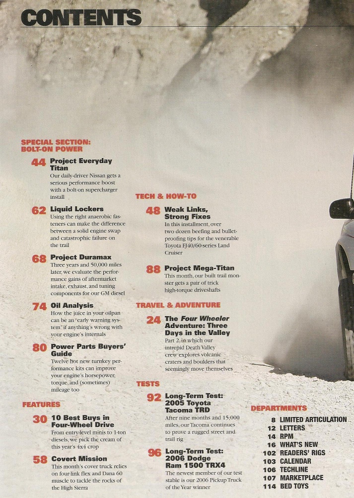 Reviews FOUR WHEELER 2006 SEPT - TOYOTA TECH, 10 BEST BUYS