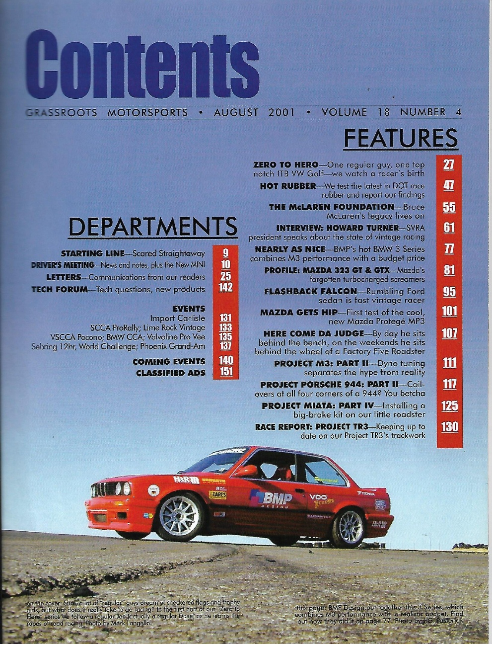 Reviews GRASSROOTS MOTORSPORTS 2001 AUG - RACING HOW TO, TIRE TEST, MAZDA, MINI, PROJS