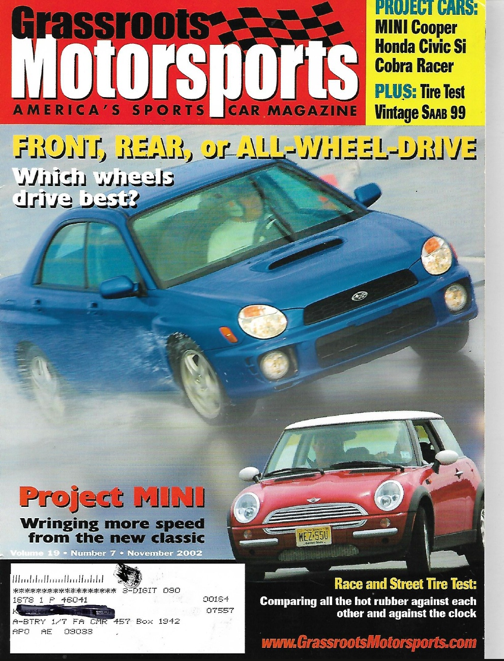 Reviews GRASSROOTS MOTORSPORTS 2002 NOV - PROJ MINI, HONDA CIVIC, COBRA, SAAB 99