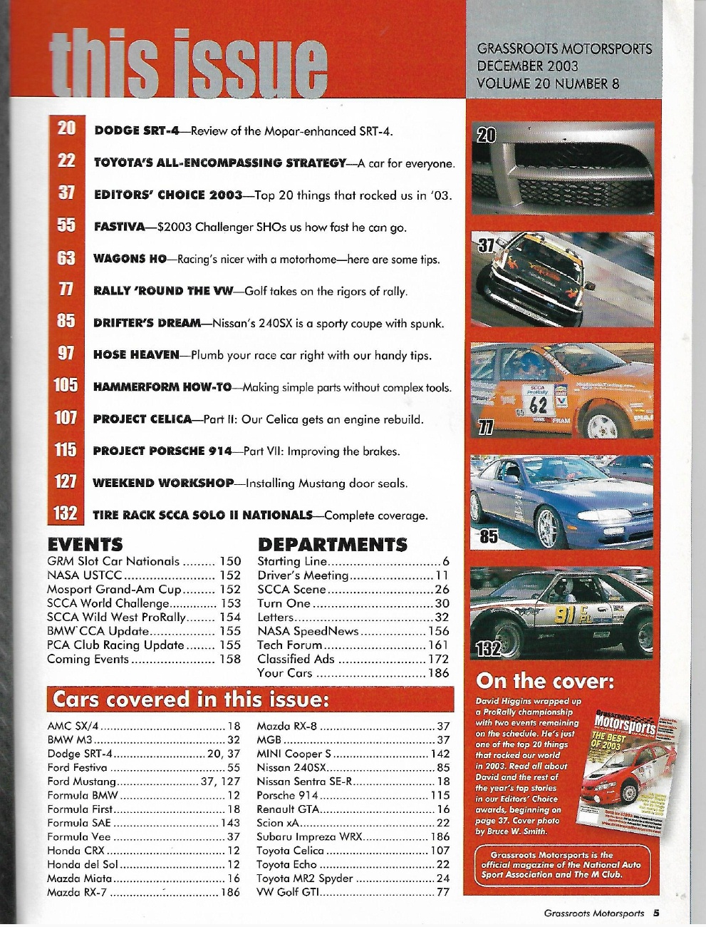 Reviews GRASSROOTS MOTORSPORTS 2003 DEC - BEST OF 2003,FESTIVA,PORSCHE 914,NISSAN 240SX