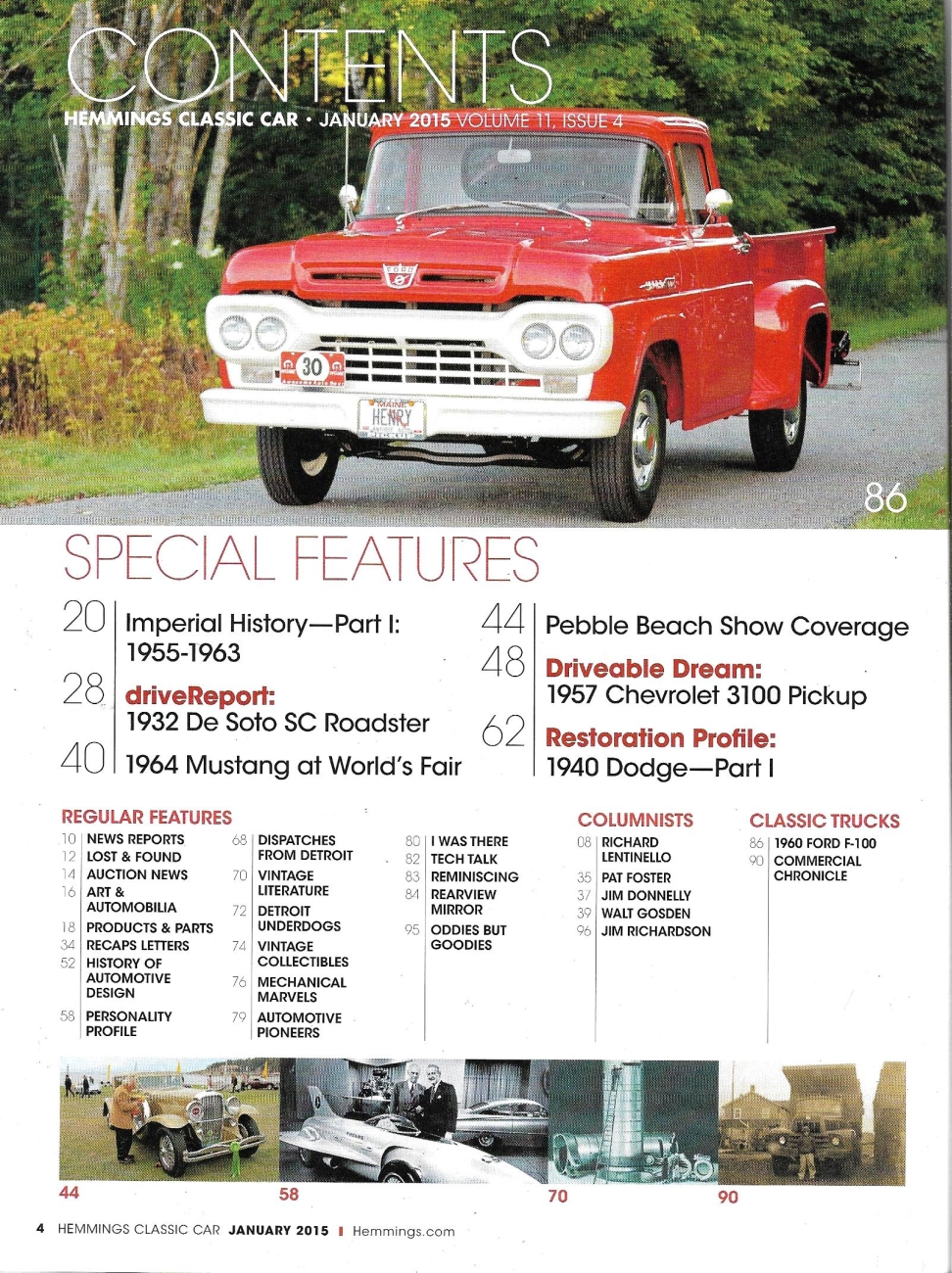 Reviews HEMMINGS CLASSIC CAR 2015 JAN - '32 SC DE SOTO, '57-61 FORD F-SERIES, IMPERIALS