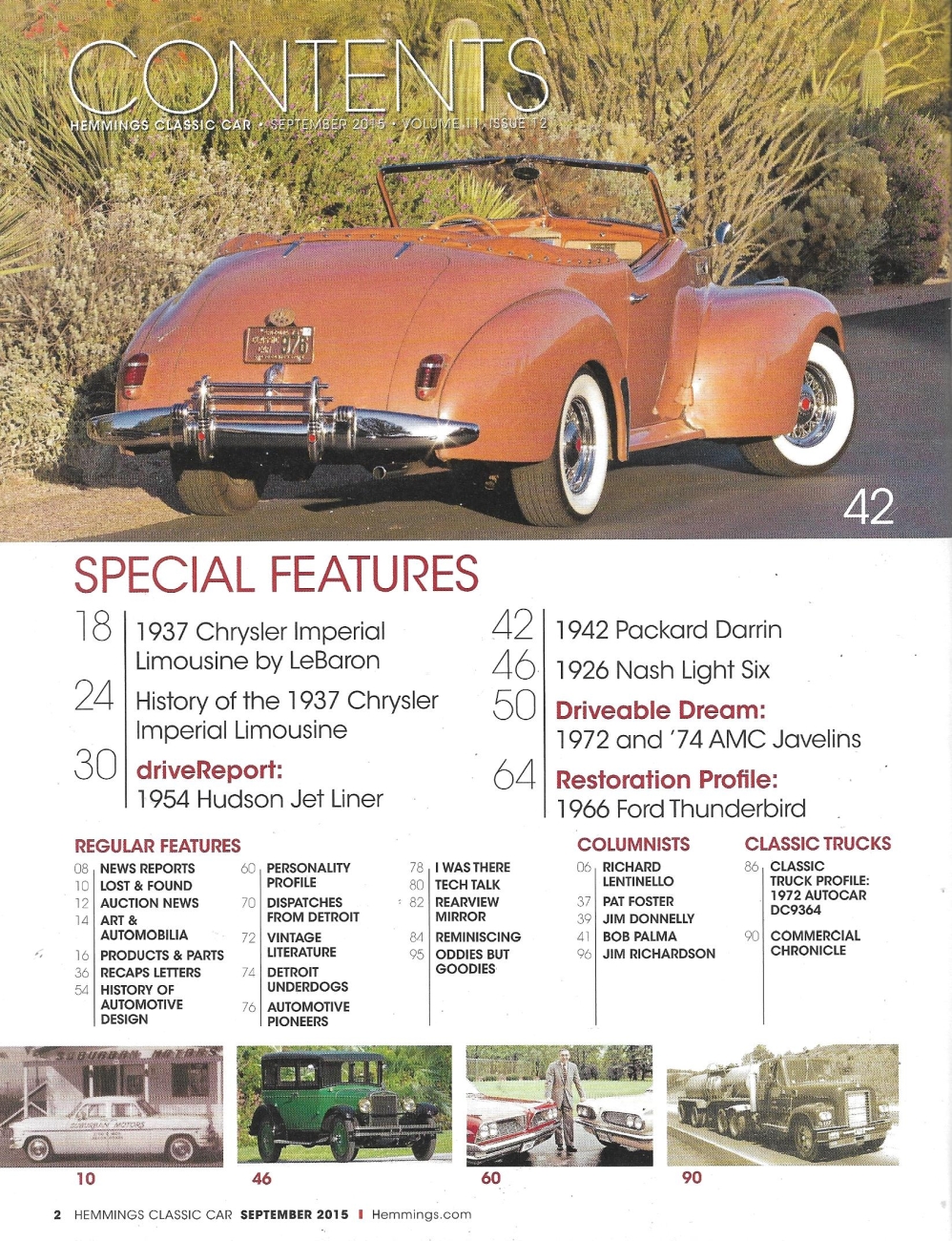 Reviews HEMMINGS CLASSIC CAR 2015 SEPT - HUDSON '54 JET LINER, '72 AUTOCAR, PACKARDS
