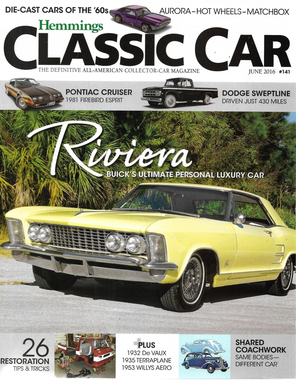 Reviews HEMMINGS CLASSIC CAR 2016 JUNE - RIVIERA, '32 DE VAUX, '53 WILLYS AERO, ESPRIT
