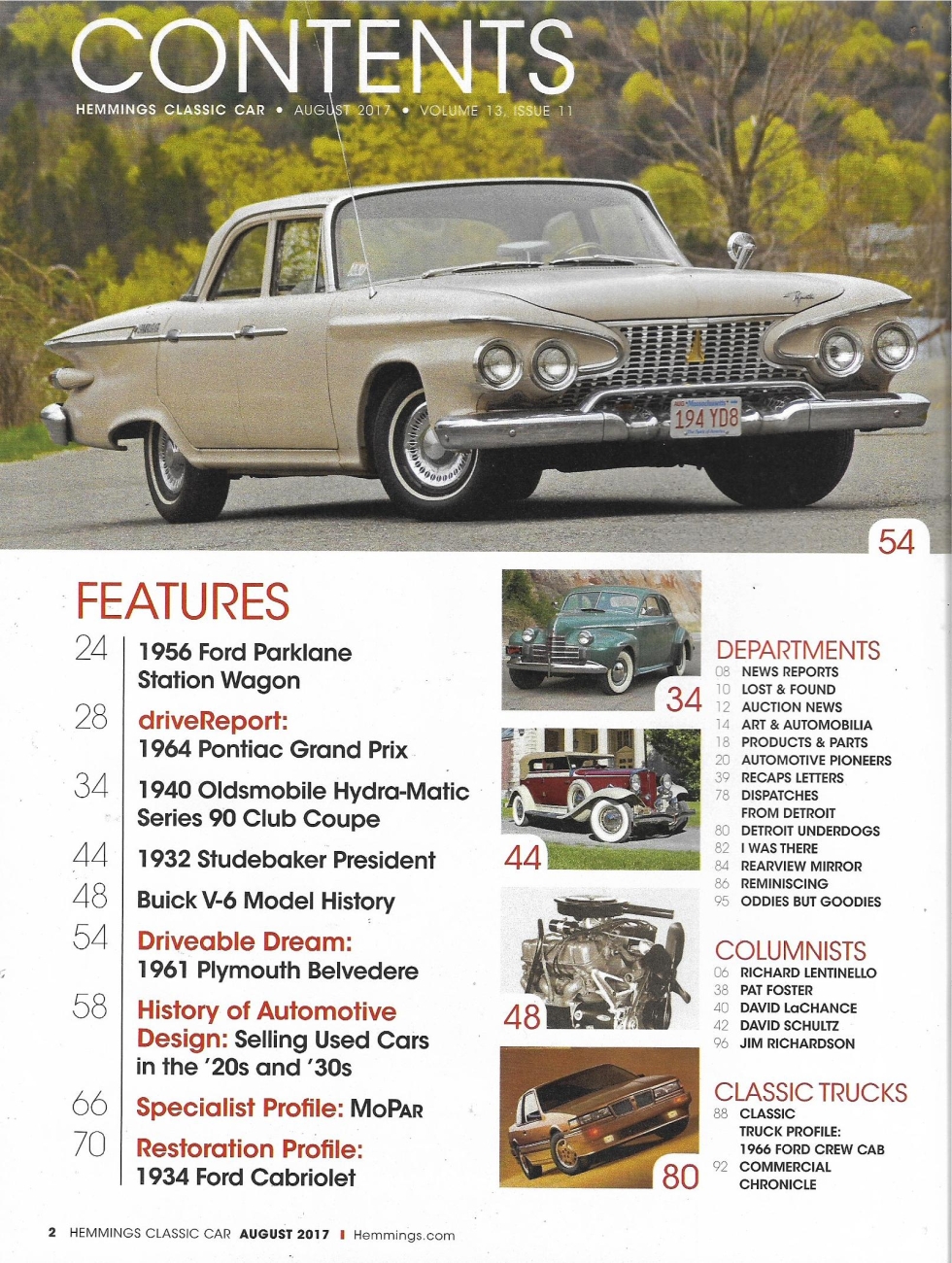 Reviews HEMMINGS CLASSIC CAR 2017 AUG - '64 GRAND PRIX, '66 CREW CAB FORD, '32 STUDE