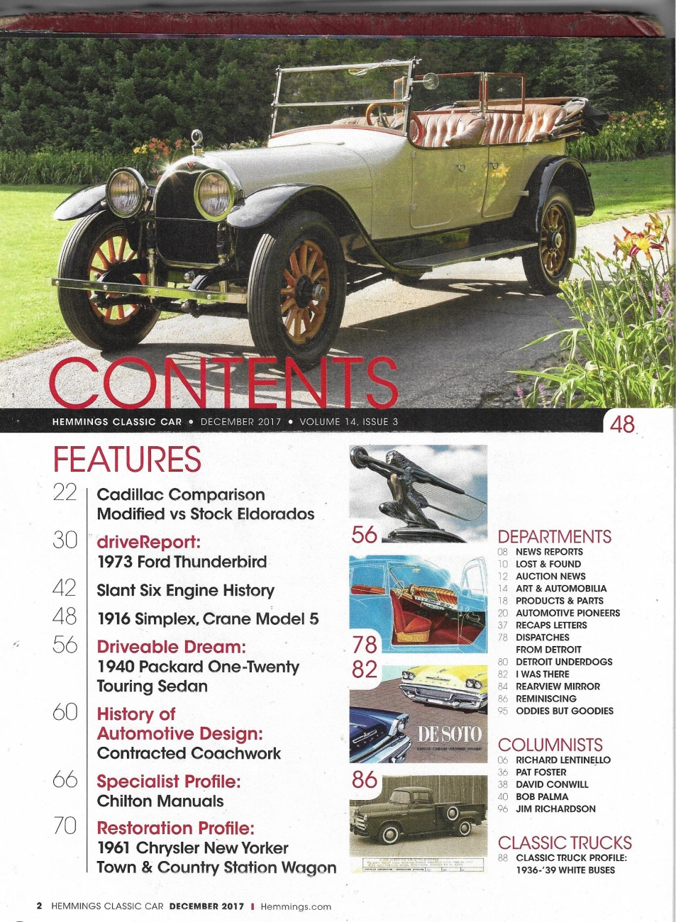 Reviews HEMMINGS CLASSIC CAR 2017 DEC - '36-39 WHITE BUS, '73 T-BIRD, '61 NEW YORKER