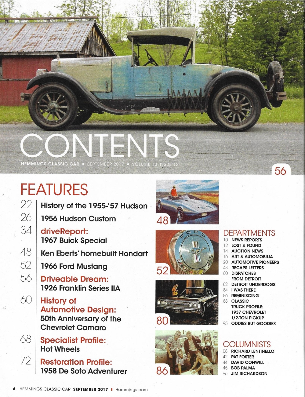 Reviews HEMMINGS CLASSIC CAR 2017 SEPT - '67 BUICK, '37 CHEVY TRUCK, '58 DE SOTO