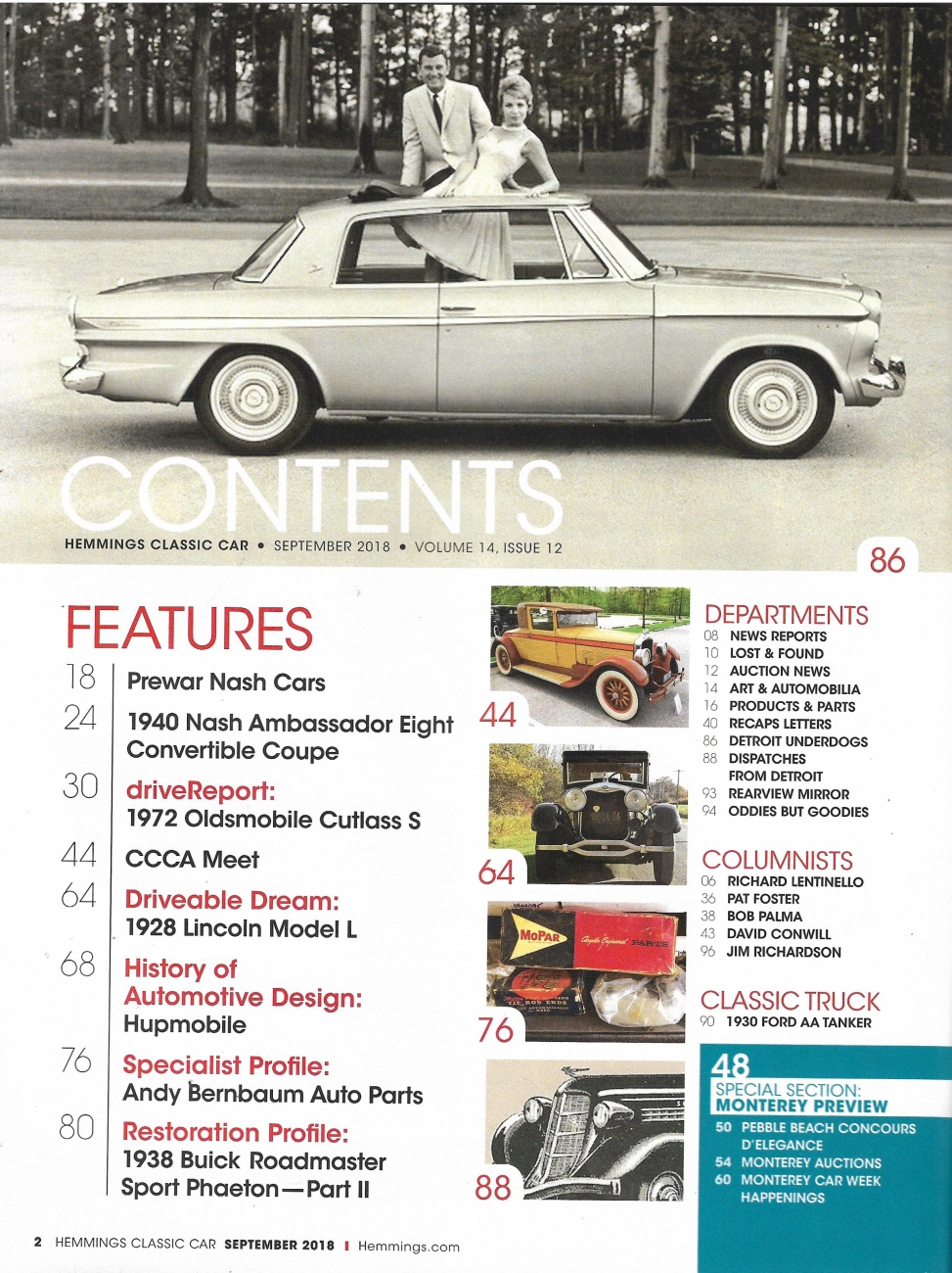 Reviews HEMMINGS CLASSIC CAR 2018 SEPT - 4-4-2 OLDS CUTLASS S,'30 MODEL AA TANKER, NASH