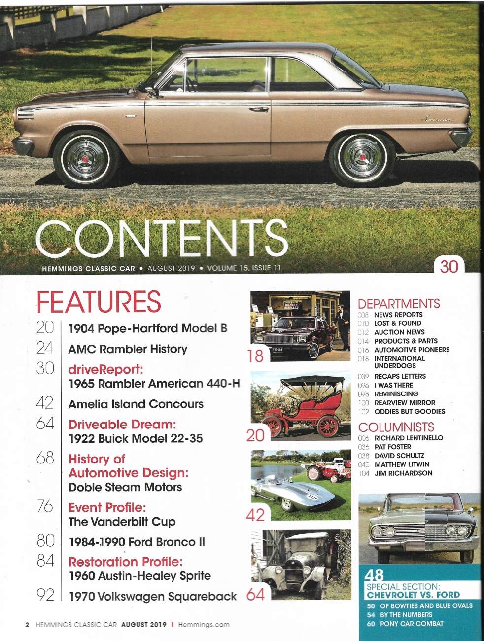Reviews HEMMINGS CLASSIC CAR 2019 AUG - AMC RAMBLERS, DOBLE STEAM CARS, BRONCO II