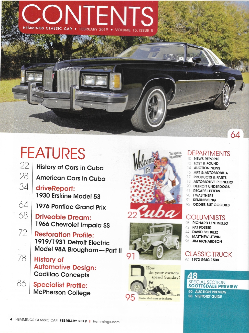 Reviews HEMMINGS CLASSIC CAR 2019 FEB - '66 IMPALLA SS, '72 GMC 1500,'19 ELECTRIC PT II