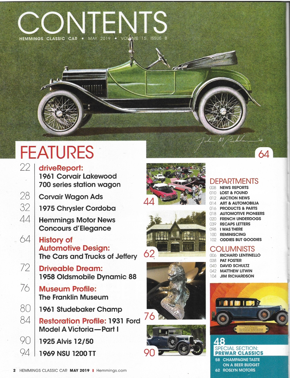 Reviews HEMMINGS CLASSIC CAR 2019 MAY - '75 CORDOBA, '69 NSU 1200 TT, CORVAIR LAKEWOOD