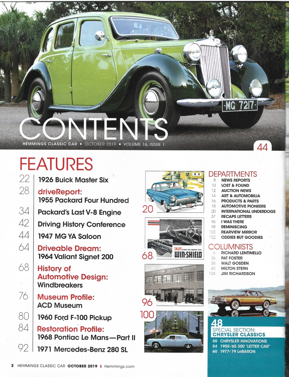 Reviews HEMMINGS CLASSIC CAR 2019 OCT - '60 F-100,'55 PACKARD 400,CHRYSLERS, '68 LEMANS