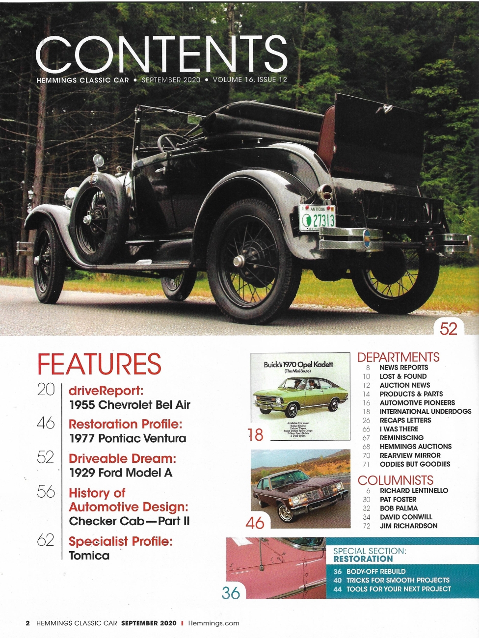 Reviews HEMMINGS CLASSIC CAR 2020 SEPT - CHECKER CABS, '29 FORD A, '55 BEL AIR, '74 AMC