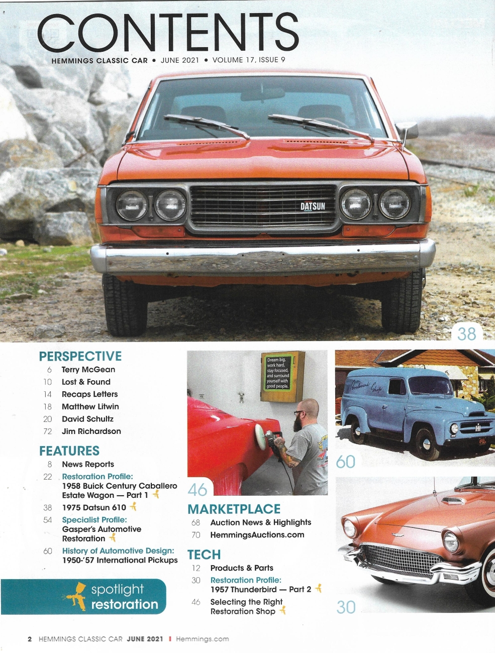 Reviews HEMMINGS CLASSIC CAR 2021 JUNE - '75 DATSUN 610, '58 BUICK RESTO,'57 T-BIRD PT2