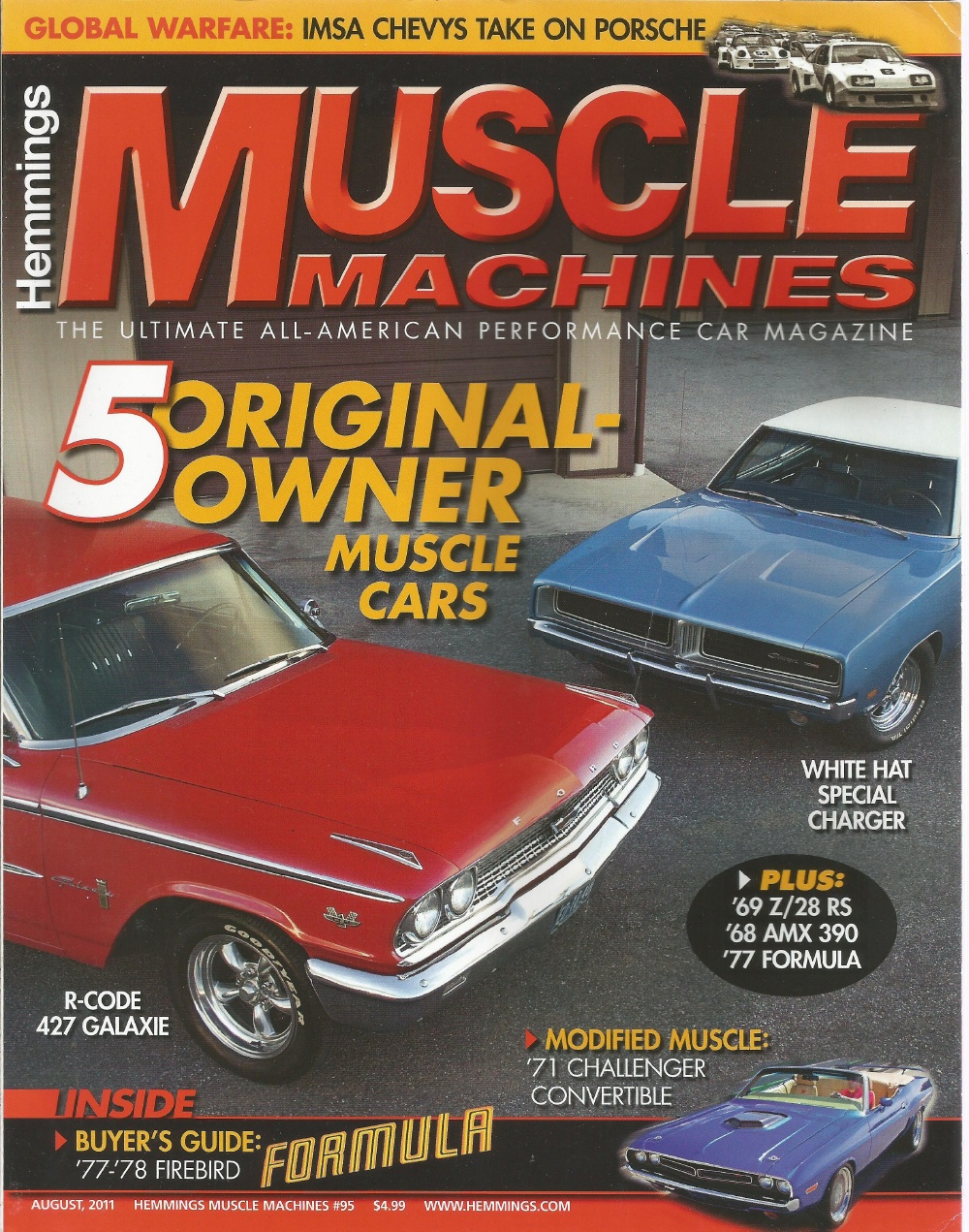 HEMMINGS MUSCLE MACHINES 2011 AUG - R-CODE, IMSA MONZA, AMX 390, Z/28 RSWithin this issue you will discover the following topics: 1) Bob Harrell's arrest-me-red '63 Galaxie 500 427 R-Code (Cover Car) 2) Rick Oldhouser's screamin' yeller '69 Z/28 RS 3) John Caley's nasty little '68 AMC AMX 390 4) IMSA racing and the Chevy Monza 5) Tech questions & answers 6) Reader's rides 7) The latest musclecar and auction news 8) A comprehensive buyer's guide to the '77-'78 Firebird Formula 9) Restoring a '69 Dodge Charger 440 (Cover Car) 10) A tribute to the great Mark Donohue 11) Recalling the Tom Hunter/Roy Mayne '65 NASCAR Impala 12) The latest go-fast & eye-candy goodies 13) Phil Cummings & his racing '71 Javelin 14) A sweetly updated '71 Challenger convertible 15) Rebuilding a Chrysler 440 Six Pack 16) The latest in aftermarket oil pumps - Part 1 Plus many other musclecar related topics. |