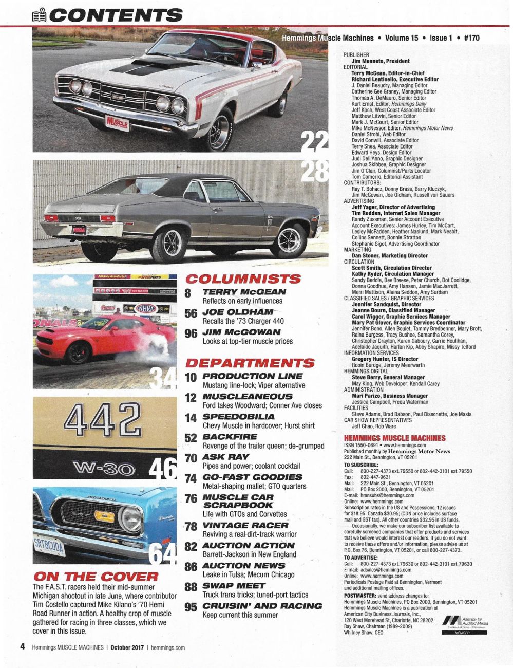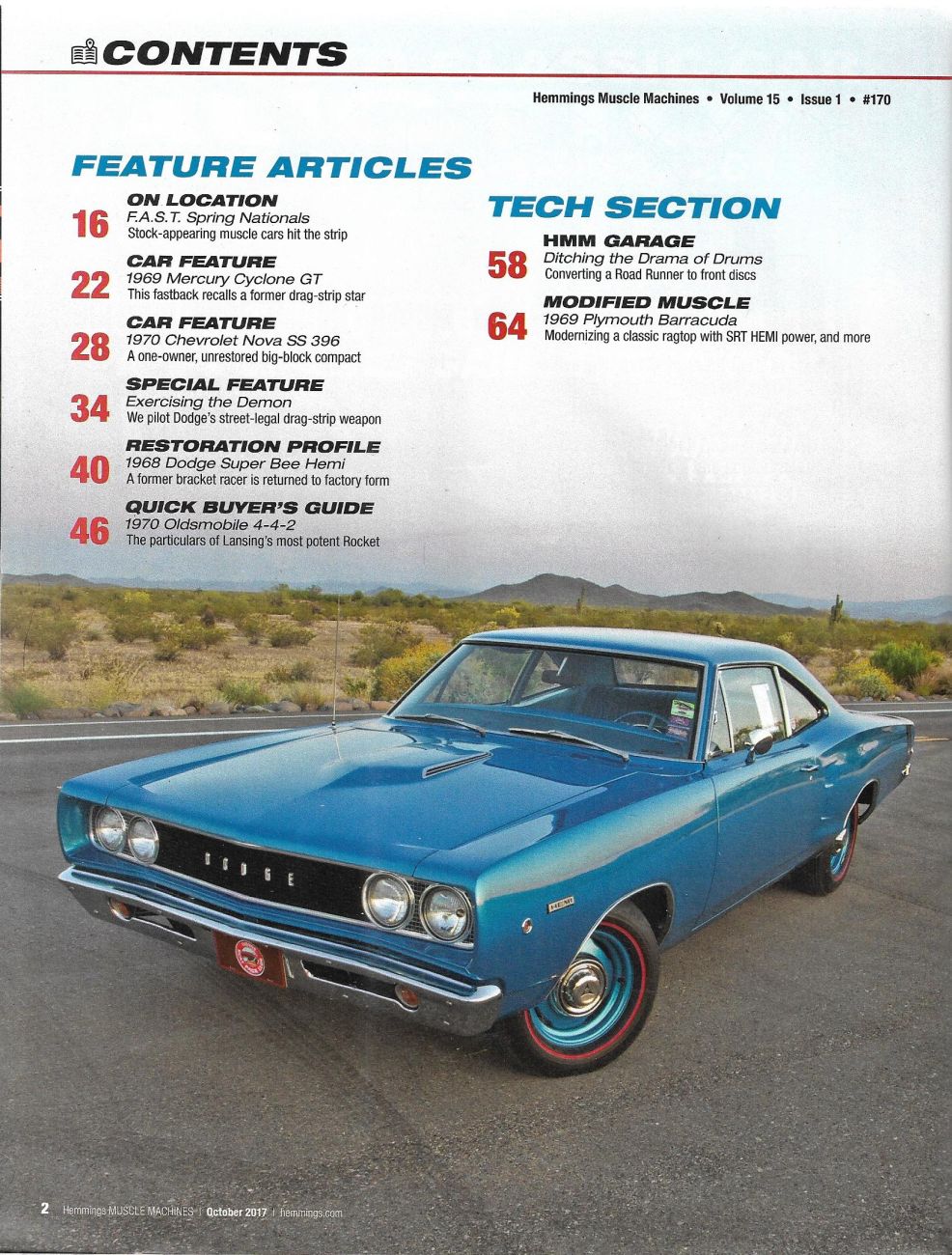 Reviews HEMMINGS MUSCLE MACHINES 2017 OCT - FAST NATS, '70 OLDS 4-4-2, '68 HEMI SUPER B
