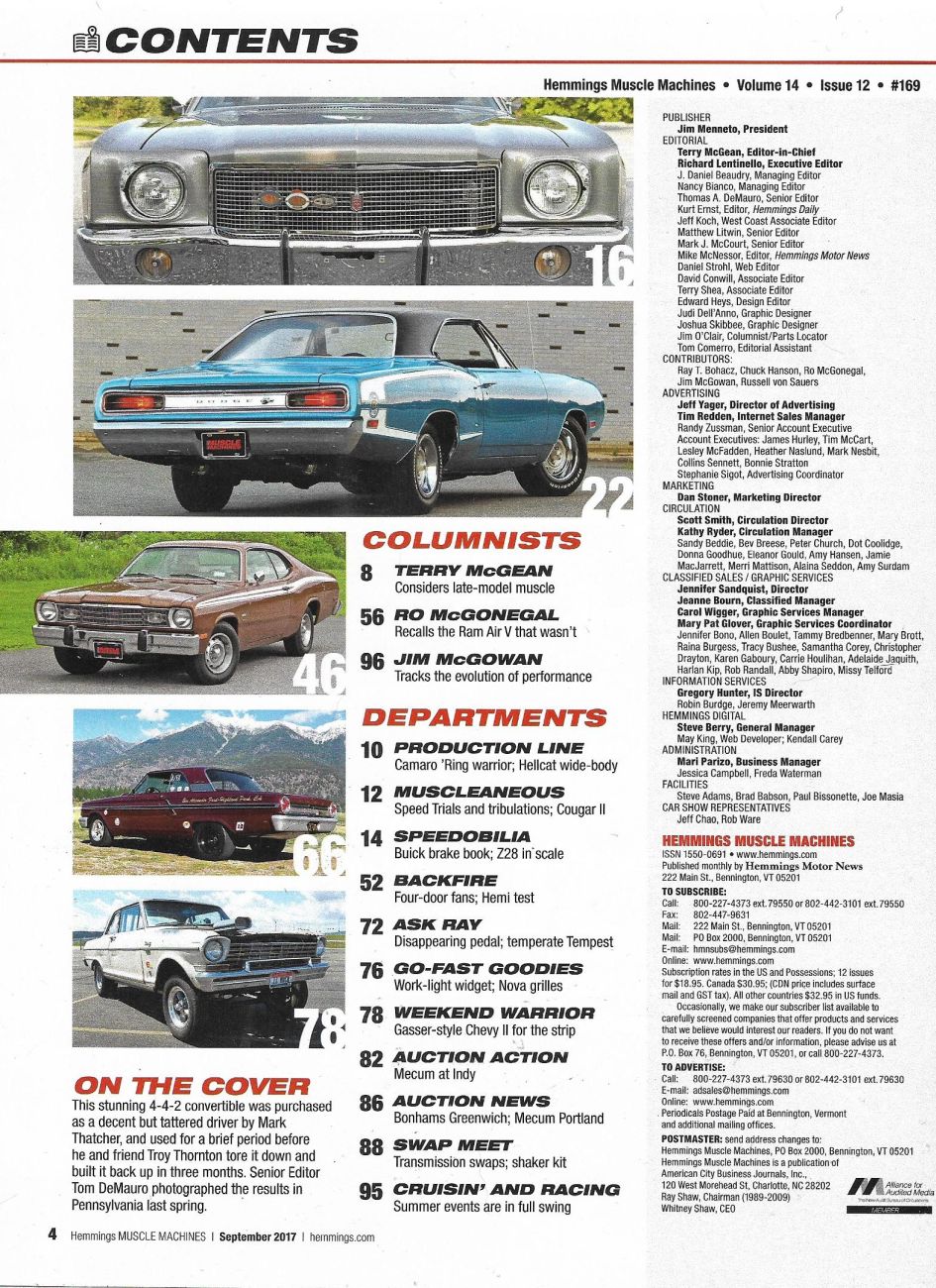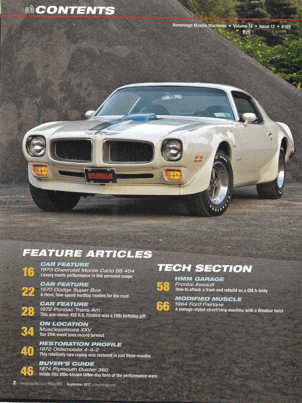HEMMINGS MUSCLE MACHINES 2017 SEPT - '74 DUSTER 360, '64 FAIRLANE 427, '72 T/A