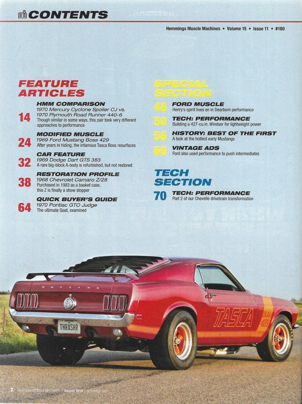 Reviews HEMMINGS MUSCLE MACHINES 2018 AUG - '69 DART GTS 383,'69 TASCA BOSS, FORD HIST