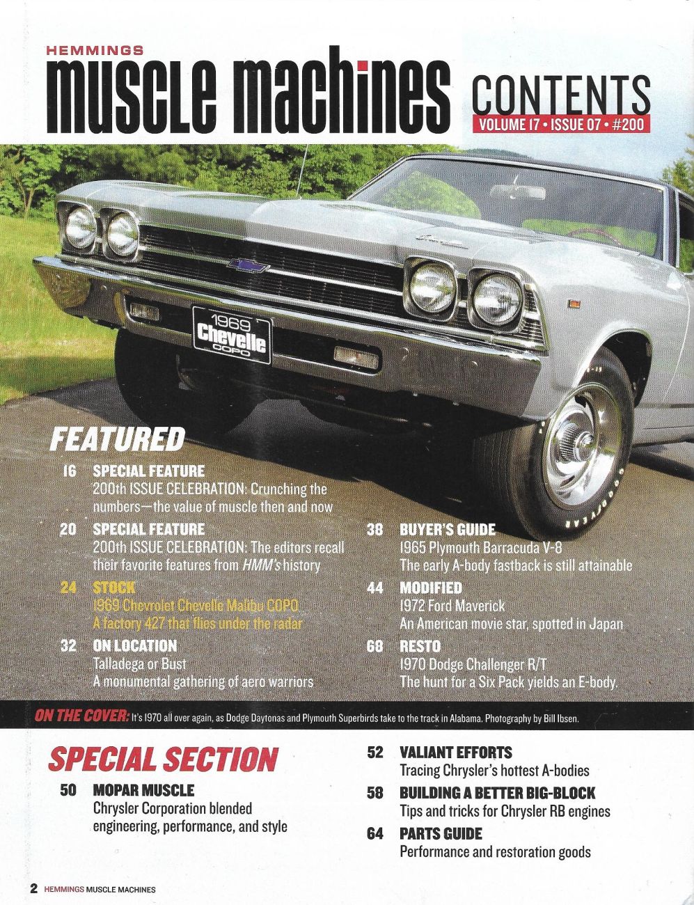 Reviews HEMMINGS MUSCLE MACHINES 2020 APR - 69 MALIBU COPO, CUDA V8, 72 MAV, CHALL R/T
