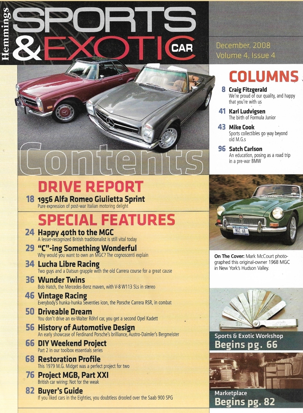 Reviews HEMMINGS SPORTS & EXOTIC CAR 2008 DEC - MGC, PORSCHE RSR, GIULIETTA SPRINT