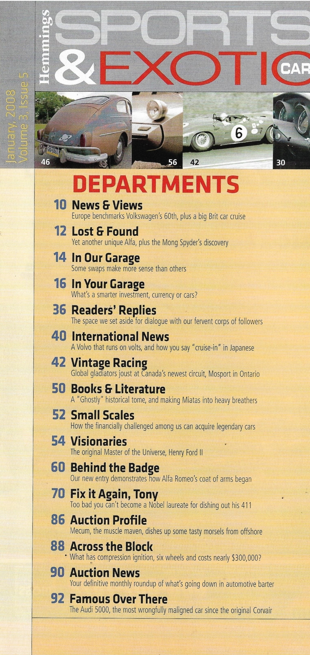 HEMMINGS SPORTS & EXOTIC CAR 2010 JAN -There is no description for this magazine yet. See picture of cover and contents below for details.