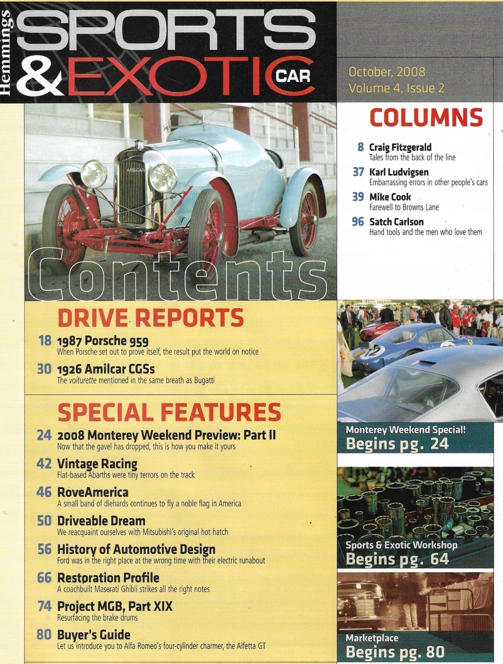 Reviews HEMMINGS SPORTS & EXOTIC CAR 2008 OCT - PORSCHE 959, MASERATI GHIBLI,ALFETTA GT