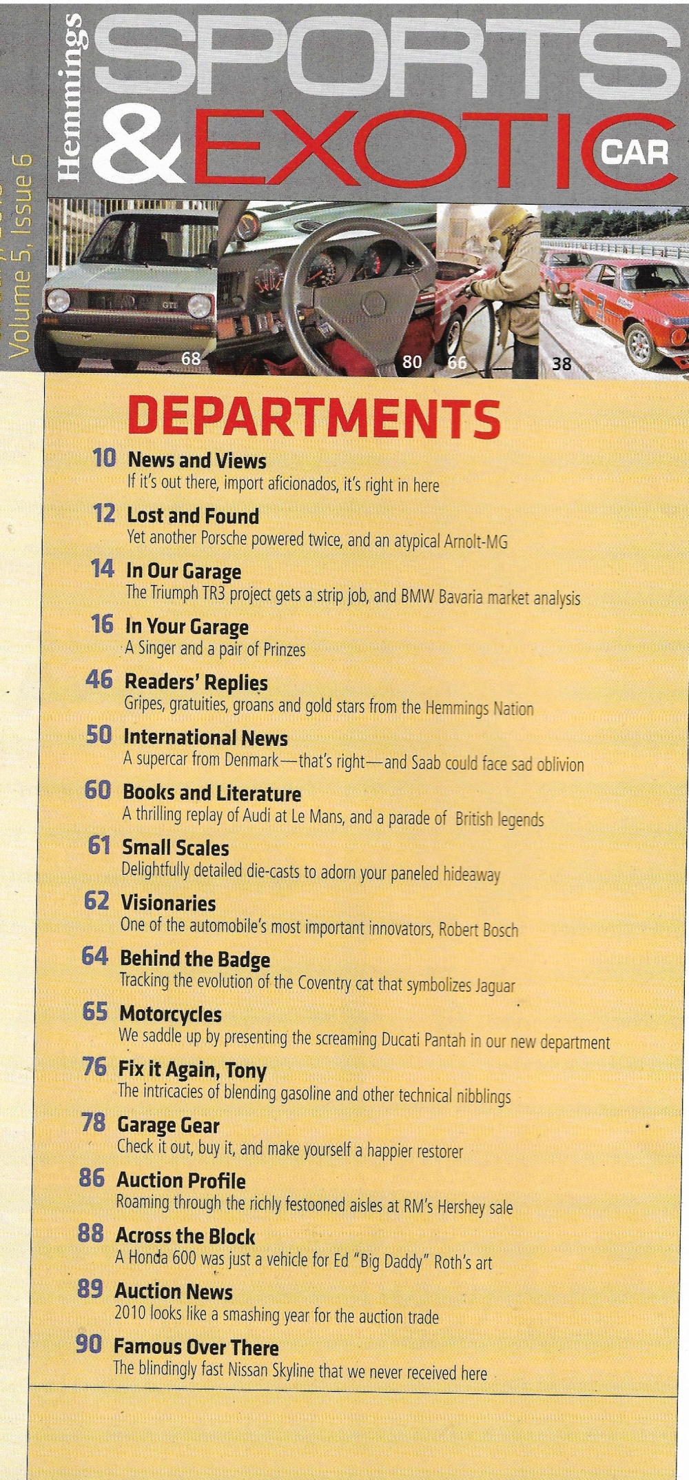 HEMMINGS SPORTS & EXOTIC CAR 2010 FEB -There is no description for this magazine yet. See picture of cover and contents below for details. ![]() ![]() ![]() |