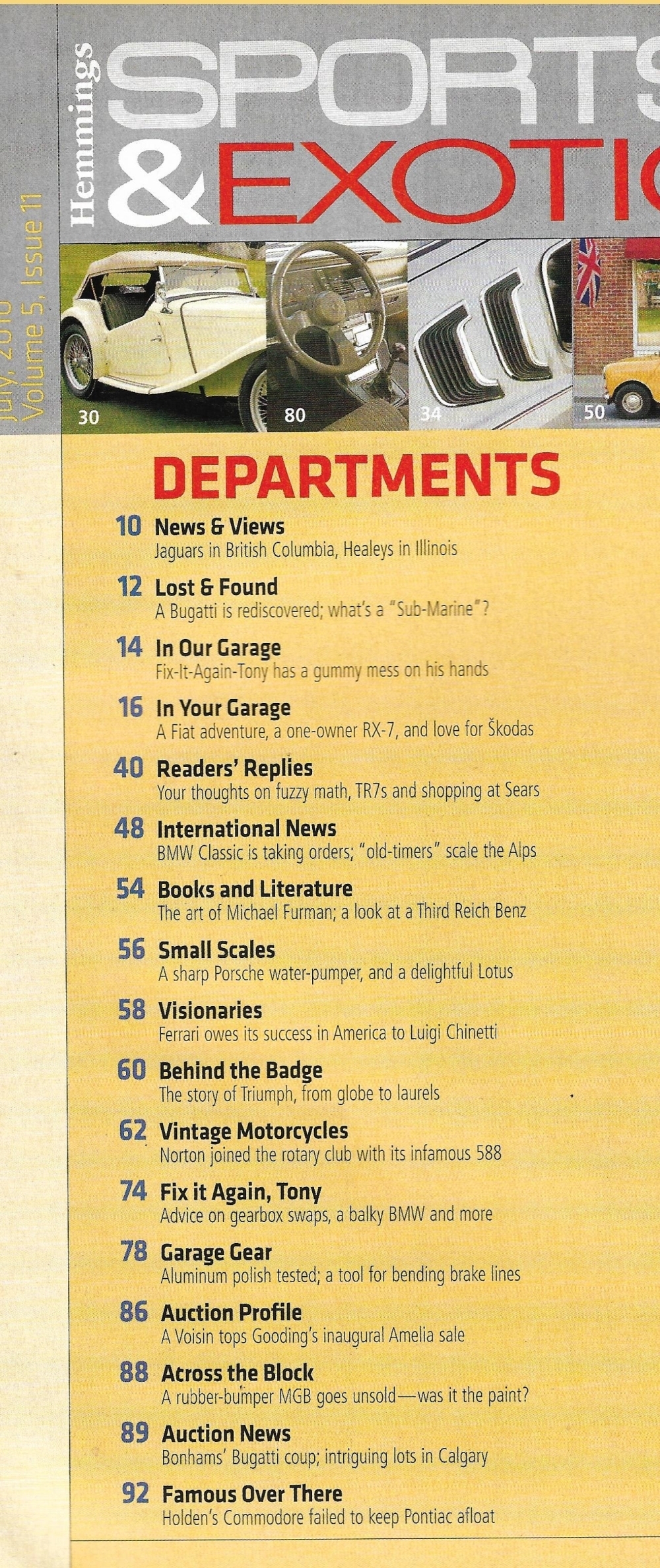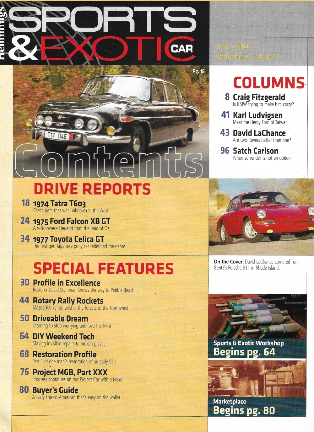 Reviews HEMMINGS SPORTS & EXOTIC CAR 2010 JULY - 911 RESTO,FORD FALCON XB GT, RX 7'S
